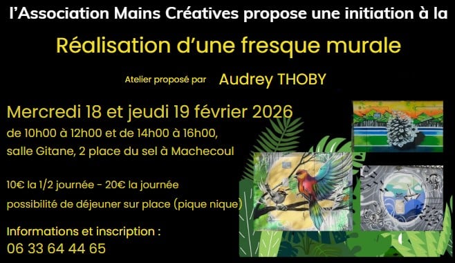 Afin d’embellir le local de notre association, Audrey THOBY créera une fresque murale. Pendant 2 jours, nous proposons aux enfants, ados et adultes de participer à cette création.