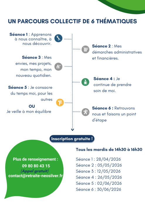 Inscription gratuite : 09 80 80 43 15 – contact@retraite-neosilver.fr
